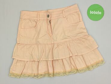 Spódnica rozkloszowana w kolorze brzoskwiniowym - Fason: rozszerzana (A-line), sięga nad kolano - Tkanina: żakardowa/strukturalna z delikatnym, wypukłym wzorem - Skład materiału (metka): 97% polie...