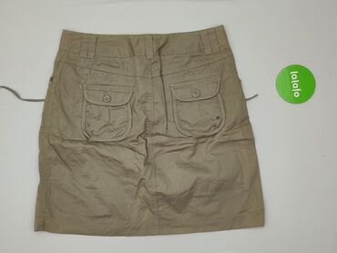 Jasna spódnica damska w kolorze beżowym, wykonana z lekkiego materiału. Spódnica ma praktyczne kieszenie z przodu, zapinane na guzik, a także dwie kieszenie z tyłu, co czyni ją funkcjonalną i wygod...