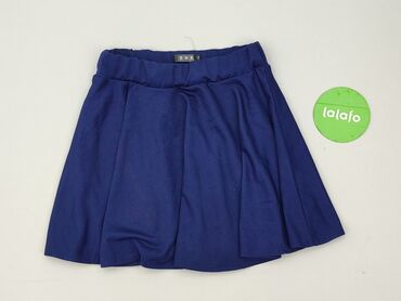 Granatowa spódniczka dziewczęca - Fason: rozkloszowana, lekko trapezowa - Talia: elastyczna gumka dla wygodnego dopasowania - Kolor: granat - Detale: cienka biała lamówka biegnąca wzdłuż dołu spód...Stan: