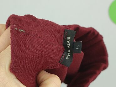 Prosty, uniwersalny model idealny na co dzień i do szkoły; ładnie się układa dzięki szerokim zakładkom. Marka: River Island (metka widoczna na zdjęciu). Kolor głęboki bordowy.