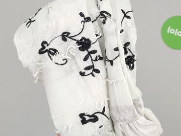 Biała spódnica mini z haftem ażurowym - Kolor: biały - Fason: mini, prosty - Talia: elastyczna gumka - Dół: szeroki pas haftu angielskiego z motywem roślinnym, falowany brzeg - Tkanina: lekka, prz...