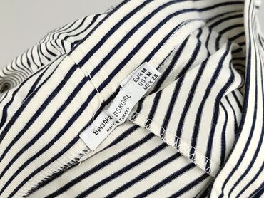 Spódnica Bershka w paski – rozmiar L (EU), USA L, MEX 30 - Kolor: biel z granatowymi paskami - Wzór: z przodu panel w poziome paski, po bokach i na pasie pionowe/ukośne paski – efekt wysmuklający ...
