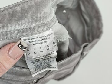 Jasnoszare spodnie damskie - Krój: proste nogawki, klasyczny stan - Zapięcie: guzik + zamek - Rozmiar z metki: 38 - Kieszenie: 2 z przodu, 2 z tyłu - Szczegóły: szlufki na pasek, subtelne przeszyc...