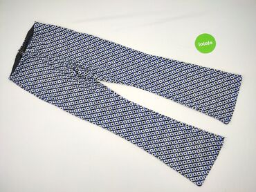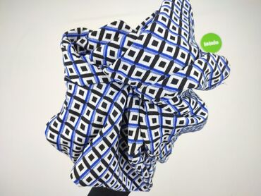 - Wzór: geometryczny, drobne romby/kwadraty w kolorach czerni, bieli i niebieskiego