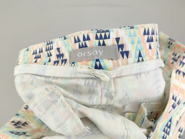 EleganckieWzorzyste spodnie damskie marki Orsay, wykonane z bawełny, to komfortowy element garderoby. Spodnie posiadają ciekawy geometryczny wzór w odcieniach niebieskiego, brzoskwiniowego, miętowego i beżu, który ożywia stylizację. Elastyczny pas zapewnia dobre dopasowanie i wygodę noszenia. Idealne na co dzień, do pracy lub na spotkania towarzyskie, świetnie sprawdzą się w zestawieniu z gładkimi topami lub bluzkami.