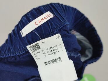 Spodnie damskie Camaïeu – elegancki model w prążek - Kolor: granatowy z delikatnymi, jasnoniebieskimi prążkami (pinstripe) - Krój: klasyczny, proste nogawki - Zapięcie: zamek błyskawiczny + haftka...