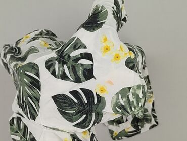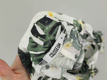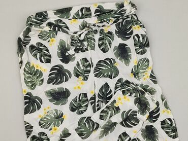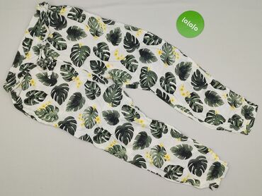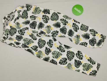 Spodnie damskie w tropikalny wzór liści - Krój: zwężane nogawki, wygodna talia na gumce - Kolor/wzór: białe tło, zielone liście palmowe (print all-over) - Materiał: 100% poliester – lekka, zwiewna...