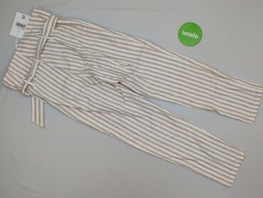 Przedmiotem ogłoszenia są damskie spodnie marki Zara w kolorze beżowym. Spodnie zostały wykonane z mieszanki lnu, wiskozy i poliestru, co zapewnia komfort noszenia. Charakteryzują się ozdobnym haft...