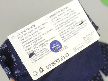 Spodnie damskie Esmara – model letni, rozmiar M (40/42) - Kolor/granat z drobnym, geometrycznym printem w odcieniach niebieskiego i jasnoróżowego - Krój luźny, zwężane nogawki; elastyczna gumka w ...
