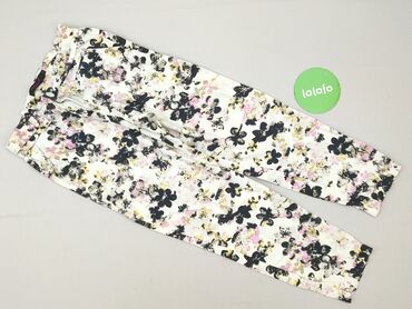 Spodnie damskie FREESIA COLLECTION, rozmiar L. - Fason: dopasowane, z lekko zwężaną nogawką - Wzór: abstrakcyjny/roślinny, kolory biel, granat, beż, neonowy róż - Zapięcie: guzik + suwak - Szlufki...