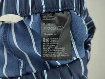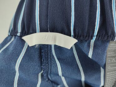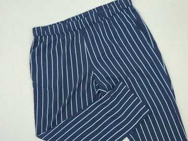 Spodnie damskie H&M w paski - Model: garniturowe/spodnie materiałowe z mankietami - Kolor: granatowy w wąskie białe pionowe paski; mankiety w kontrastowym, grafitowym kolorze - Krój: lekko zwężane...
