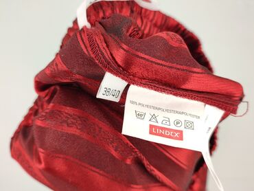 Czerwone spodnie damskie w paski, wykonane z poliestru. Posiadają elastyczny pas ze ściągaczem, zapewniający wygodę noszenia. Idealne do stylizacji casualowych lub jako element stroju domowego. Materiał: 100% poliester.
