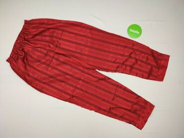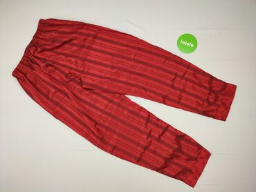Damskie spodnie w kolorze czerwonym - Fason: proste nogawki, lekko zwężane ku dołowi - Talia: wysoka/średnia, elastyczna gumka dla wygody - Materiał: 100% poliester (łatwy w pielęgnacji, niegniotą...Stan: