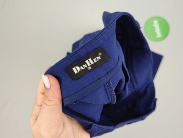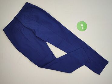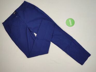 Spodnie damskie materiałowe, granatowe. - Krój: zwężane nogawki, zaprasowane zaszewki z przodu, mankiety na dole nogawek. - Stan: używane (informacja dodatkowa: idealny). - Zapięcie: guzik i zamek...
