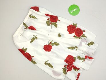 Damskie spodnie z długimi nogawkami w kolorze czerwonym, ozdobione szarym kwiatowym wzorem na całej powierzchni. Spodnie posiadają wiązanie w pasie, co pozwala na regulację i dopasowanie do sylwetk...