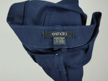 Granatowe spodnie damskie Esmara - Fason: zwężane nogawki, wygodny pas na gumie - Kolor: ciemny granat - Pas: elastyczny ściągacz w paski (granat/czerwień/biel), z przodu gładki, bez zapięcia - Ki...