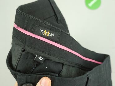 Czarne spodnie damskie marki TARA, idealne do codziennego użytku. Charakteryzują się prostym krojem i zapięciem na guzik. Model posiada dwie kieszenie z przodu, co zwiększa jego funkcjonalność. Spodnie są w rozmiarze 40, co zapewnia odpowiednie dopasowanie dla wielu sylwetek. Ich uniwersalny kolor pozwala na łatwe łączenie z różnymi stylizacjami, zarówno casualowymi, jak i bardziej eleganckimi.