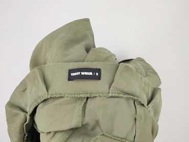 Zielone spodnie damskie CROPP - Rozmiar: 38 (z metki) - Fason: wysoki stan, paperbag z plisami z przodu - Pasek w komplecie, szerokie szlufki, klamra w kolorze tortoise - Nogawki zwężane ku dołowi...