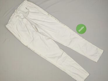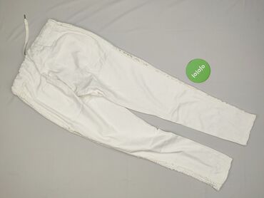 Białe spodnie damskie z ażurową lamówką po bokach. - Fason: proste nogawki, lekko zwężane ku dołowi - Talia: elastyczna gumka + troczki do regulacji - Kieszenie: 2 wpuszczane z przodu, 2 naszywane...