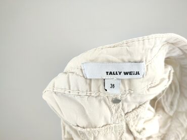 Beżowe spodnie damskie TALLY WEiJL - Rozmiar z metki: 36 - Fason: joggery/chinosy z elastyczną gumką w pasie i na dole nogawek - Zapięcie: guzik + suwak - Kieszenie: 2 skośne z przodu, 2 naszywane...