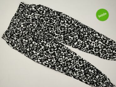 Damskie spodnie w kwiatowy wzór - Fason: długie, zwężane nogawki z marszczeniem/ściągaczami na dole - Stan wykończenia: materiał plisowany/marszczony, lekko elastyczny - Wzór: czarno-białe liście ...