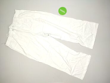 Białe damskie spodnie z lekkiej, przewiewnej tkaniny - Krój: zwężane nogawki, luźna góra - Pas: szeroka, marszczona guma – komfort i dopasowanie bez zapięcia - Kieszenie: dwie boczne - Długość: pe...