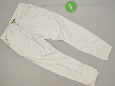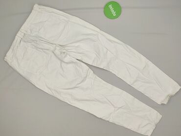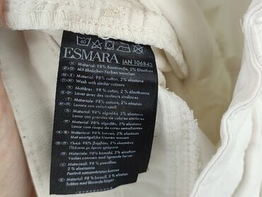 Białe damskie spodnie Esmara - Krój: zwężane nogawki, delikatne kanty z przodu - Talia: elastyczny ściągacz w paski (granat/biel/szarość) – wygodne dopasowanie bez paska - Zapięcie: zamek i haftka...