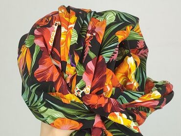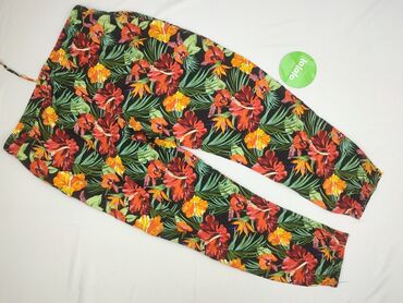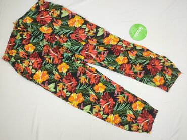 Spodnie damskie AMISU, rozmiar EU 38. - Fason: lekkie, zwiewne spodnie z wąską nogawką zakończoną delikatną gumką - Wzór: tropikalny print na czarnym tle – liście monstery, kwiaty, tukany, akcenty...