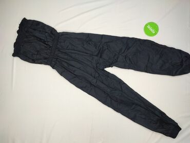 Czarny damski kombinezon H&M Basic - Rozmiar: XS (EU/DE XS, US XS, CA TP, CN 160/80A, MX XCH) - Fason: długie, szerokie nogawki; góra typu smock (mocno marszczona/rozciągliwa), wiązane ramiączka -...