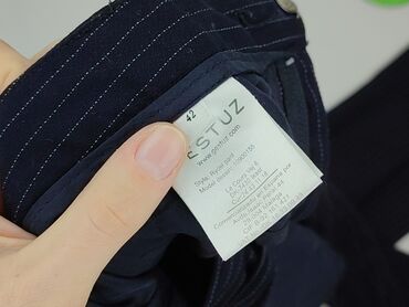 Spodnie damskie materiałowe – granatowe - Klasyczny, prosty krój z lekko zwężaną nogawką - Gładka tkanina w kolorze granatowym - Zapięcie na suwak i haftkę/kryty guzik (pas z ozdobnymi guzikami z ...