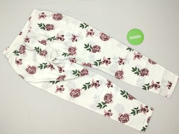 Spodnie damskie Terranova, rozmiar XS. - Fason: lekkie, zwężane ku dołowi, z gumką w pasie i przy kostkach - Wzór: tropikalny/kwiatowy – hibiskusy i liście palm na granatowym tle, intensywne kolor...