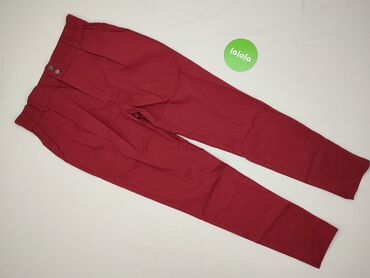 Spodnie damskie w kolorze bordowym, charakteryzujące się wzorem w drobną kratę, która dodaje im subtelnego charakteru. Fason zwężany ku dołowi, z elastyczną talią typu paperbag, zapewniającą komfor...Stan: