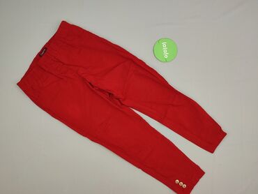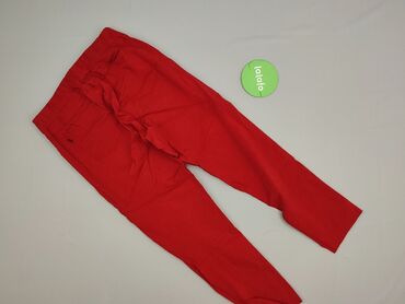 Czerwone damskie spodnie typu casual - Kolor: intensywna czerwień - Krój: proste nogawki do kostek, luźniejsze, ze ściągaczem w pasie - Pas: elastyczny (gumka) – wygodne dopasowanie bez zapięcia -...Stan: