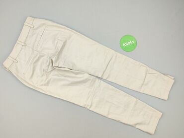 Beżowe spodnie damskie H&M - Rozmiar z metki: EU 42 (UK 14, CN 170/80A) - Krój z wysokim stanem, lekko zwężane nogawki - Pasek z tej samej tkaniny do wiązania w talii; szerokie szlufki - Przód z z...