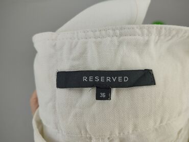 Spodnie damskie Reserved - Krój: garniturowy, z zakładkami z przodu, lekko zwężane nogawki - Stan w pasie: średni - Szlufki na pasek - Kieszenie: dwie wpuszczane z przodu, dwie tylne listewkowe - ...