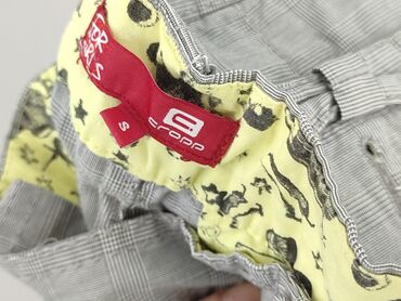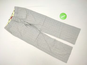 Spodnie damskie CROPP, rozmiar 38. - Krój: zwężane nogawki, lekko podwyższony stan, zakładki z przodu dla lepszego dopasowania - Wzór: krata w odcieniach szarości, grafitu i granatu z delikatnymi,...