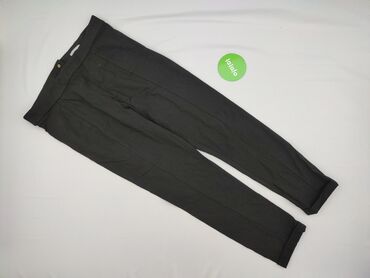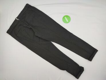 Uniwersalne czarne spodnie idealne do stylizacji smart casual i do biura. Subtelne zakładki przy pasie zapewniają wygodę, a zwężone nogawki z mankietem nadają nowoczesny wygląd. Marka: H&M. Rozmiar z metek niewidoczny – proszę sugerować się wymiarami ze zdjęć/realnymi pomiarami jeśli dostępne.