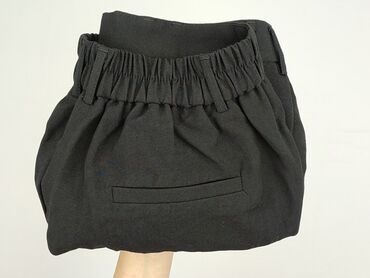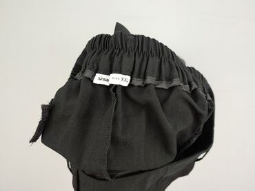Czarne spodnie damskie Sinsay – rozmiar XL - Fason: luźne, lekko zwężane ku dołowi (nogawki zakończone ściągaczami) - Wysoki stan z marszczeniami i szeroką listwą w pasie - Pasek z oczkami i metal...