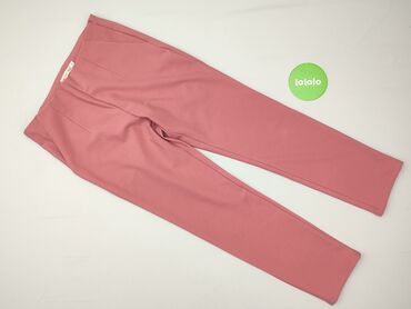 Damskie spodnie materiałowe w kolorze pudrowego różu. - Fason: zwężane nogawki (slim/cygaretki), wysoki stan - Z przodu dekoracyjne zakładki przy pasie - Szlufki na pasek - Gładka tkanina, lekko e...