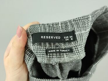 Spodnie damskie Reserved - Model: materiałowe spodnie w delikatny, jasny prążek - Kolor: szary melanż - Rozmiar z metki: EU 38 (UK 10) - Krój: prosta nogawka, lekko zwężana ku dołowi - Stan pas: e...