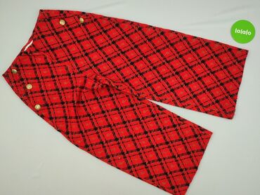 Czerwone spodnie damskie szerokie (culottes) z plisowanej, elastycznej tkaniny. - Wysoki stan z szeroką, marszczoną gumką w pasie dla wygody. - Dodatkowe, długie troczki w pasie zakończone dekora...
