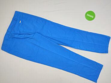 Damskie spodnie materiałowe - Kolor: jasny niebieski (błękit) - Krój: proste, zwężane nogawki - Stan zapięcia: guzik i zamek z przodu; szlufki na pasek - Kieszenie: 2 kieszenie z przodu, 2 naszywa...