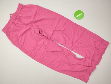 Różowe spodnie damskie Sinsay, rozmiar M. - Luźny, prosty krój z szeroką nogawką - Wysoki stan z elastyczną gumką w pasie - Sznurek do regulacji obwodu, zakończony ozdobnymi koralikami - Dwie bocz...