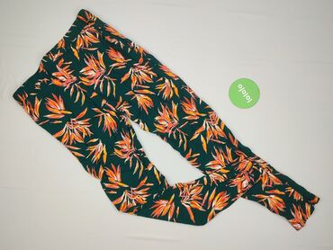 Damskie spodnie marki Esmara wykonane w 100% z wiskozy LENSING ECOVERO, co zapewnia lekkość i przewiewność. Spodnie wyróżniają się tropikalnym wzorem w liście, ananasy i arbuzy na turkusowym tle. P...