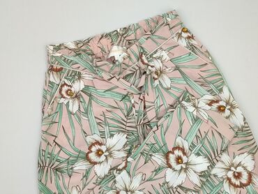 Damskie spodnie Miss Millo, rozmiar S - Wzór: gęsty, kwiatowy print w odcieniach bieli, szarości, pudrowego różu i drobnych akcentów koralowych na czarnym tle - Krój: luźne, zwężane ku dołowi; nog...