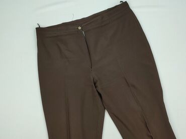 Damskie spodnie materiałowe w kolorze ciemnobrązowym. - Fason: proste nogawki, klasyczny krój - Zapięcie: zamek błyskawiczny i guzik - Szlufki na pasek - Przód gładki, z tyłu imitacja kieszeni - T...