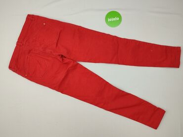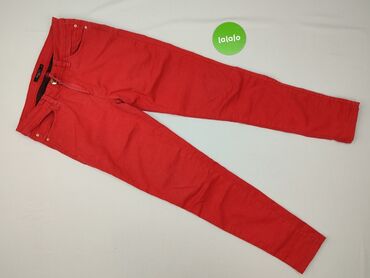 Czerwone spodnie damskie Mohito Denim Collection - Model: rurki/skinny - Rozmiar z metki: 40 - Kolor: intensywna czerwień - Kontrastowe, białe przeszycia - Zapięcie: zamek + guzik - Krój 5-pocket:...
