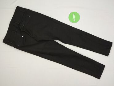 Czarne spodnie damskie Sinsay, rozmiar S. - Fason: dopasowane nogawki, zwężane ku dołowi - Pas: szeroka, elastyczna guma – wygodne dopasowanie bez guzików i suwaka - Kieszenie: dwie przednie kiesz...