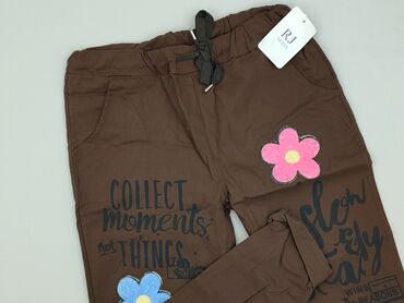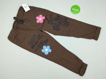 Brązowe spodnie damskie RJ Moda z nadrukami i aplikacjami kwiatów