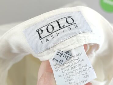 Białe damskie spodnie POLO FASHION - Krój: proste nogawki, z szlufkami na pasek - Zapięcie: suwak i guzik z przodu - Kieszenie: 2 przednie + 2 tylne naszywane - Materiał: 95% bawełna, 5% elastan –...